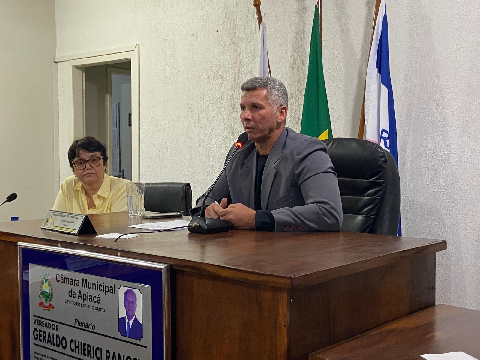 Da mesma forma, o Excelentíssimo Doutor Veraldo Macedo de Miranda, Promotor de Justiça da Comarca de Apiacá, recebeu das mãos do Presidente da Câmara Municipal de Apiacá, Vereador Fabiano Basílio Zanardi, uma placa em homenagem aos 39 anos integrando o Ministério Público Capixaba, e das mãos do Prefeito Municipal de Apiacá, Dr. Fabrício Gomes Thebaldi, uma Medalha do Mérito Apiacaense.