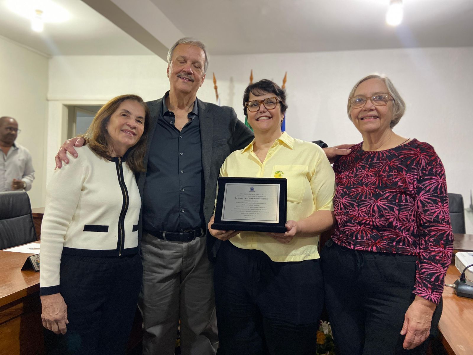 Durante a sessão, familiares receberam diploma e placa comemorativa em alusão ao centenário de nascimento, reafirmando o reconhecimento e a gratidão da cidade a um de seus maiores filhos.