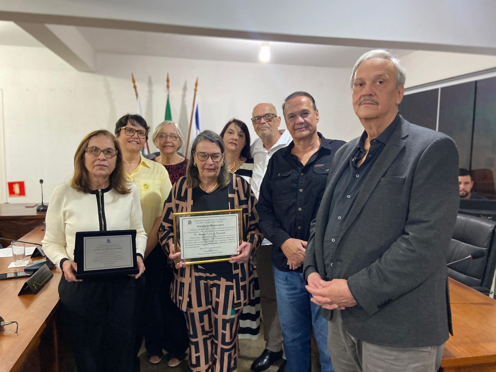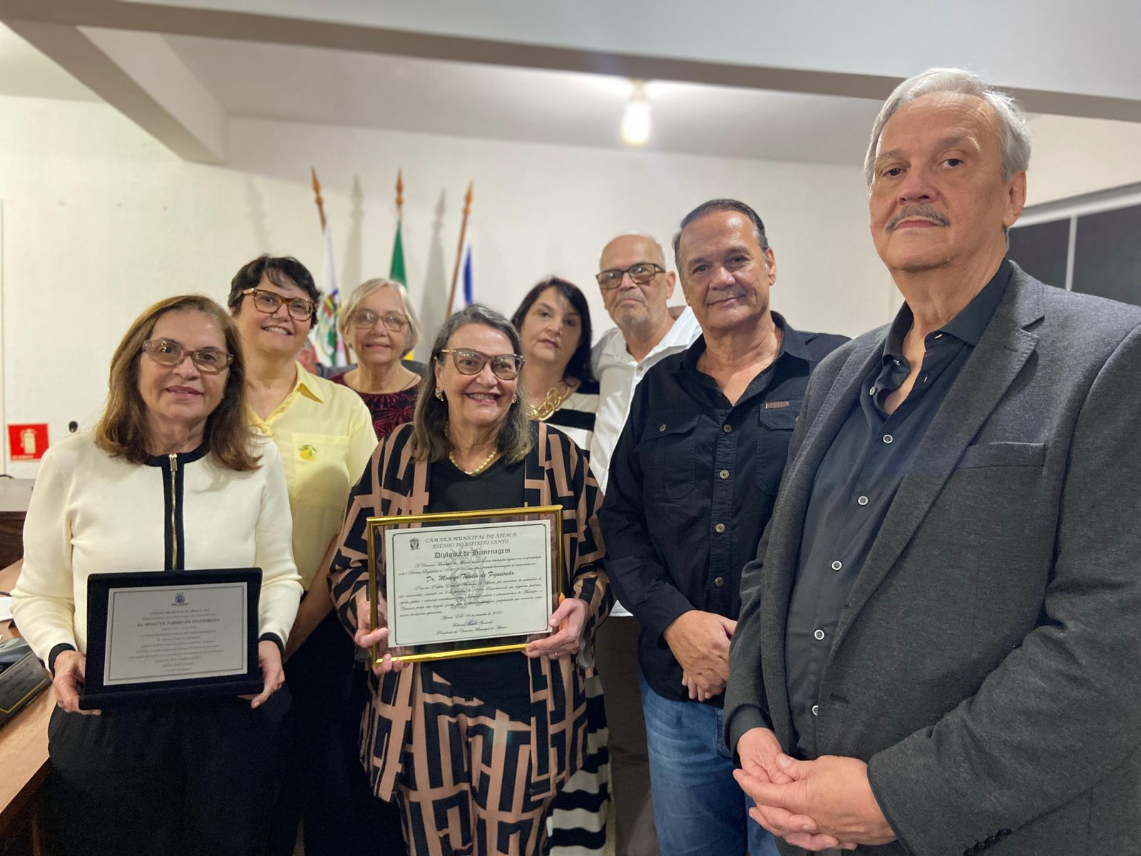 A Câmara Municipal de Vereadores de Apiacá realizou no dia 16 de dezembro, Sessão Solene para conferir os Títulos de Cidadão Apiacaense e Moção de Aplauso a diversas personalidades, que estão direta e indiretamente contribuindo para o bem-estar e a melhoria de nosso Município, além de participarem de diversas atividades que integram a nossa comunidade, sempre com o espírito altruísta de colaborar com os nossos munícipes.