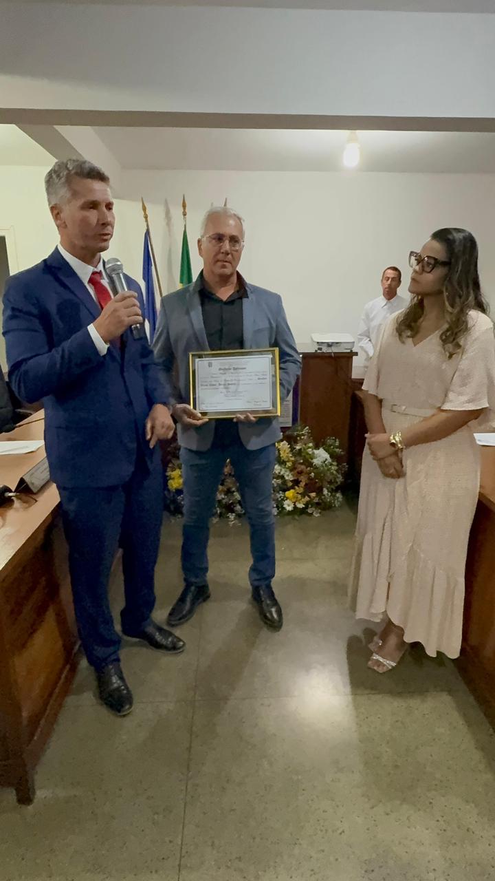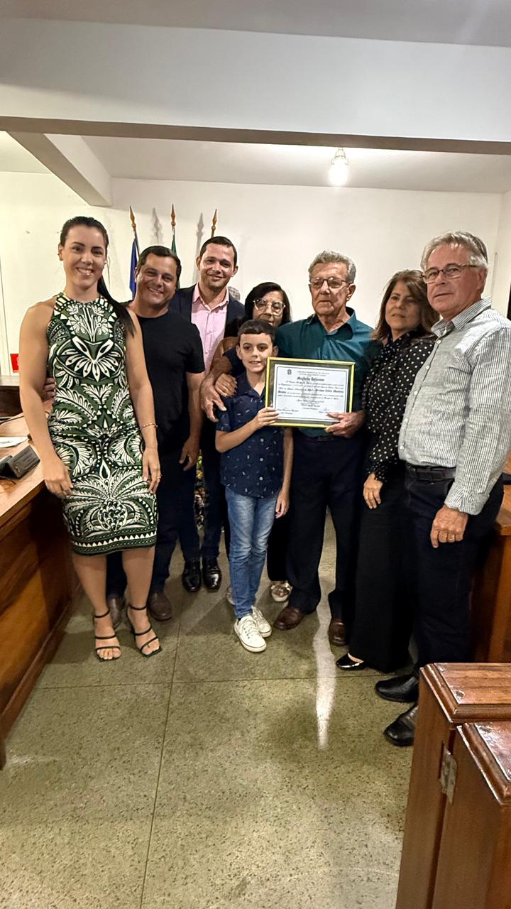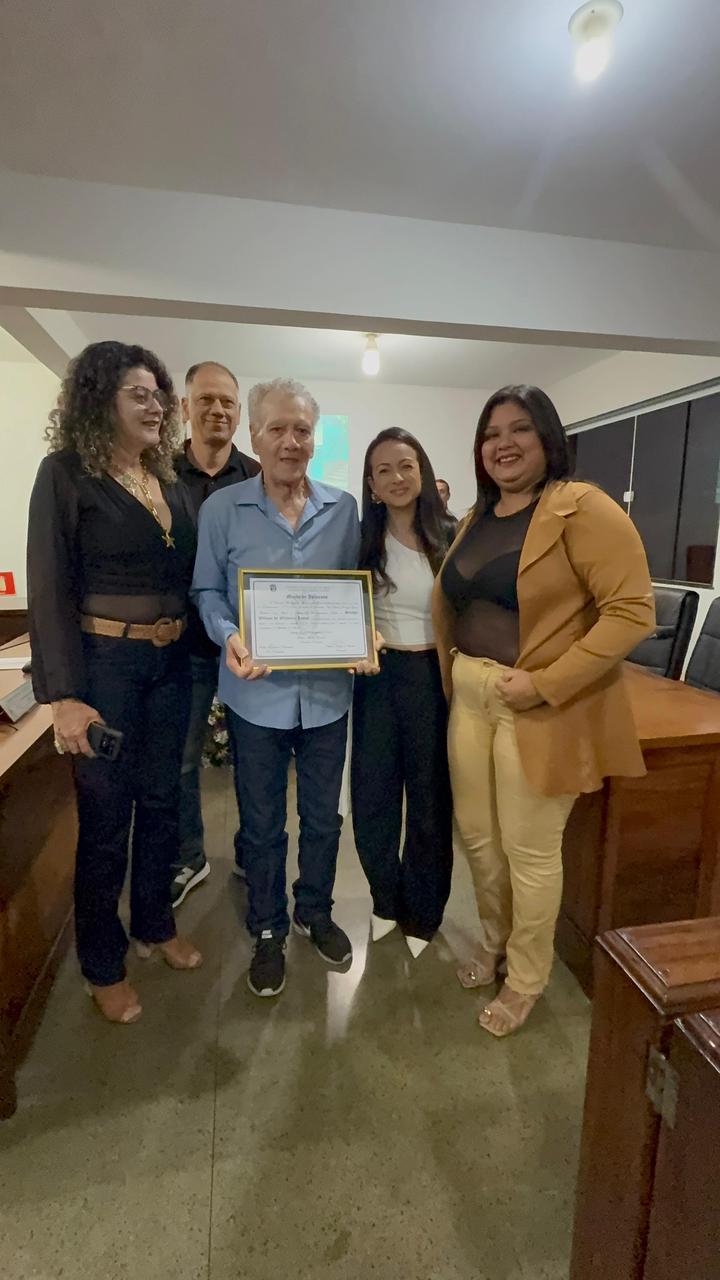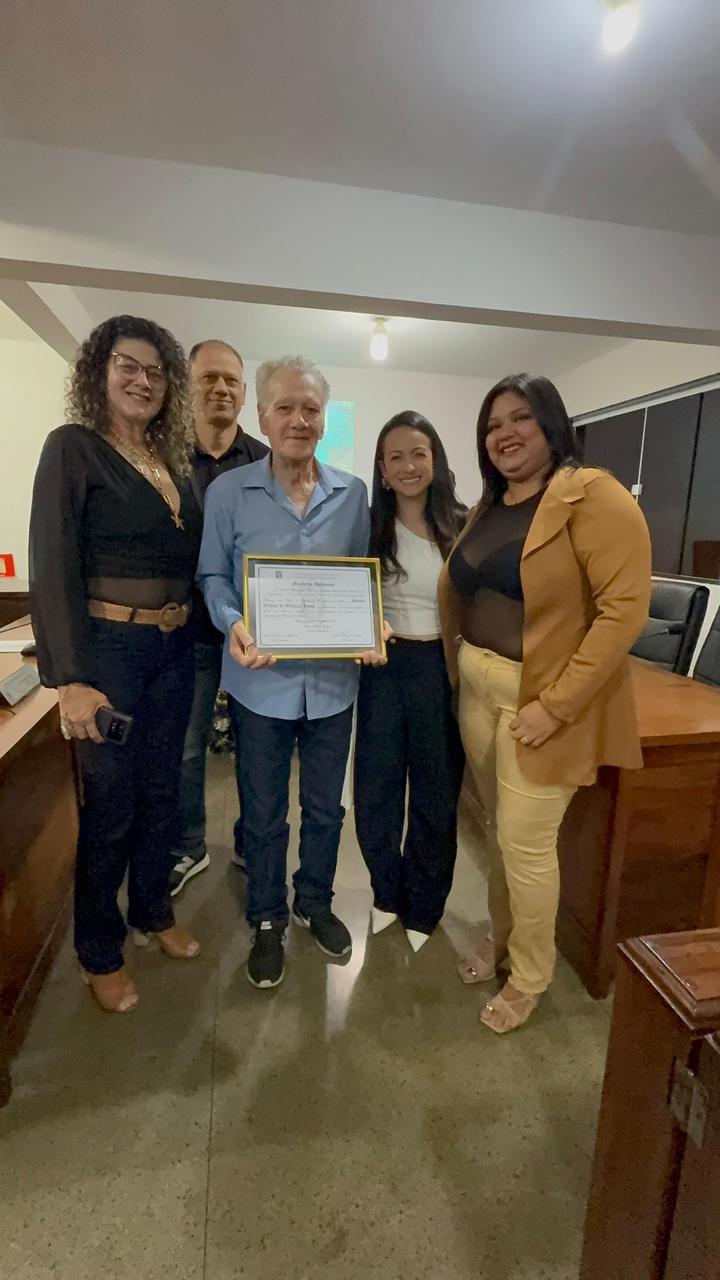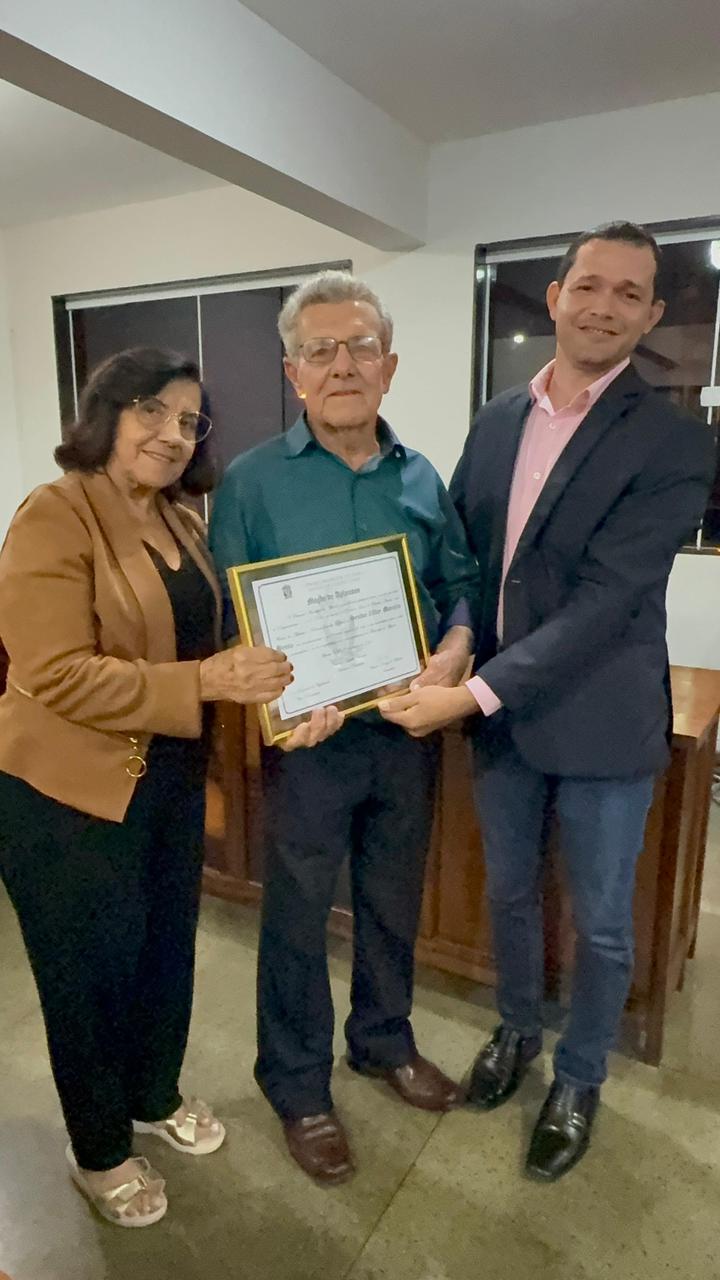 Durante a sessão, familiares receberam diploma e placa comemorativa em alusão ao centenário de nascimento, reafirmando o reconhecimento e a gratidão da cidade a um de seus maiores filhos.