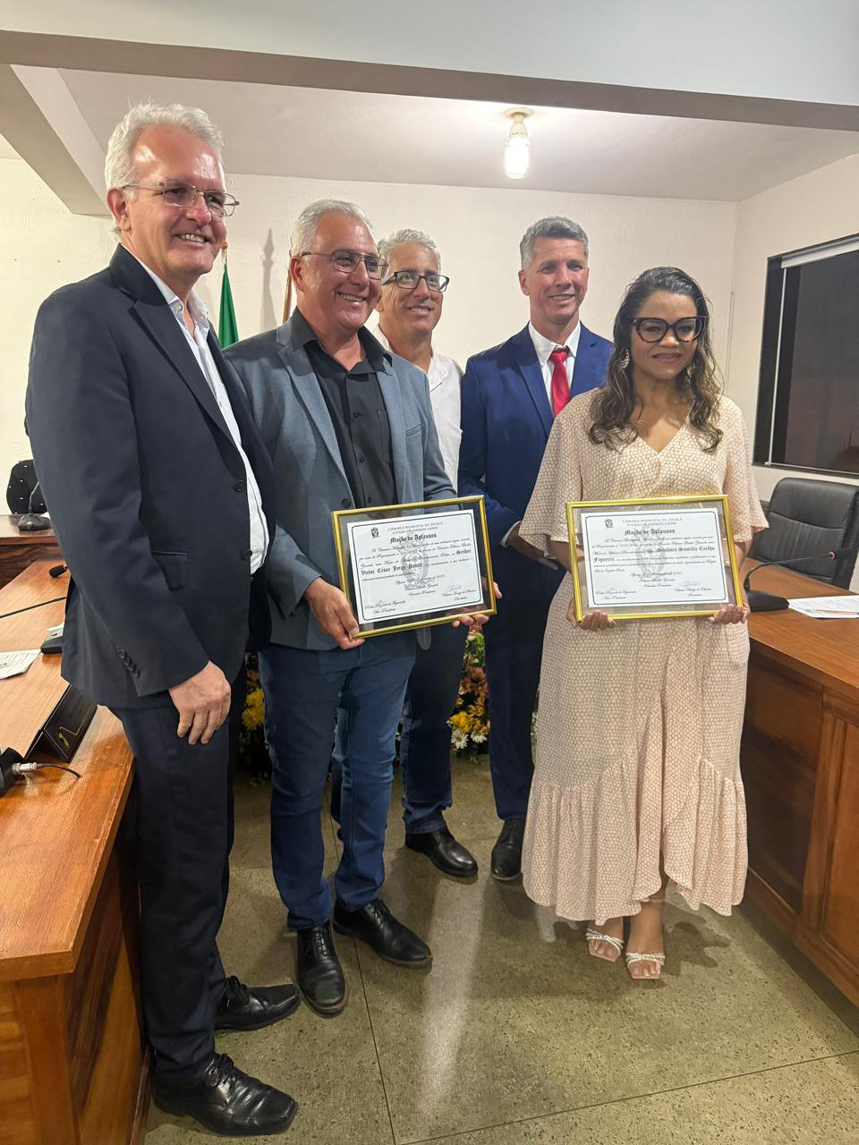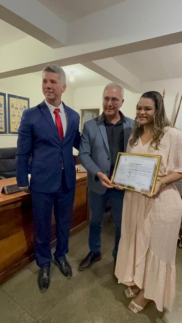A Excelentíssima Doutora Luciana Gomes Ferreira de Andrade recebeu o das mãos dos Vereadores Mario Lucio Ribeiro Marquez e Ivanildo Mendes de Oliveira, o Título de Cidadã Apiacaense, outorgado pela Câmara Municipal de Apiacá através do Decreto Legislativo nº 002/2022. Na ocasião, recebeu ainda das mãos do Prefeito Municipal de Apiacá, Dr. Fabrício Gomes Thebaldi, uma Medalha do Mérito Apiacaense.